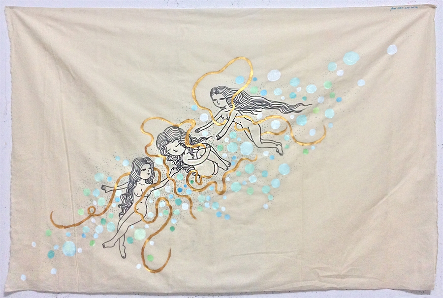 • 我們三一起飛揚 126 x 86cm 馬克筆,丙烯棉布 潘柬芝 2014 Three flow 126 x 86 cm marker ,acrylic on cloth Poon Kan Chi 2014